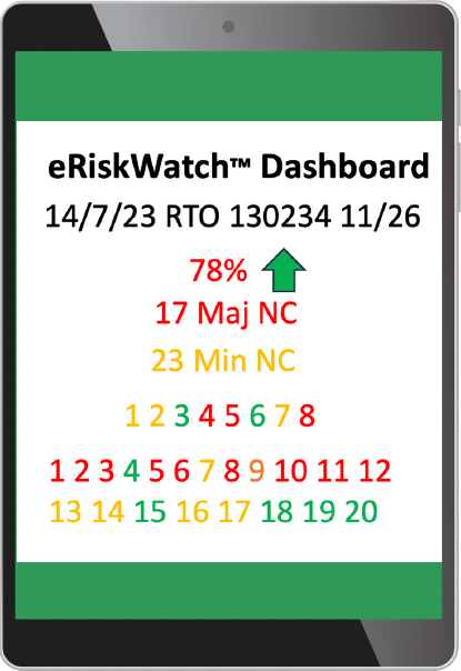The eRiskWatch dashboard provides the actionable information. The sample above shows: